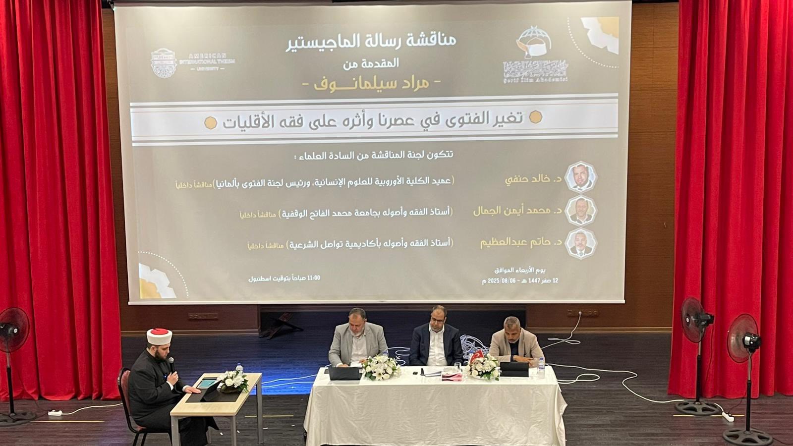 6 серпня у Стамбулі муфтій Духовного управління мусульман України «Умма» Мурат Сулейманов успішно захистив магістерську дисертацію на тему «Зміни фатв у наш час і їх вплив на фікг меншин».