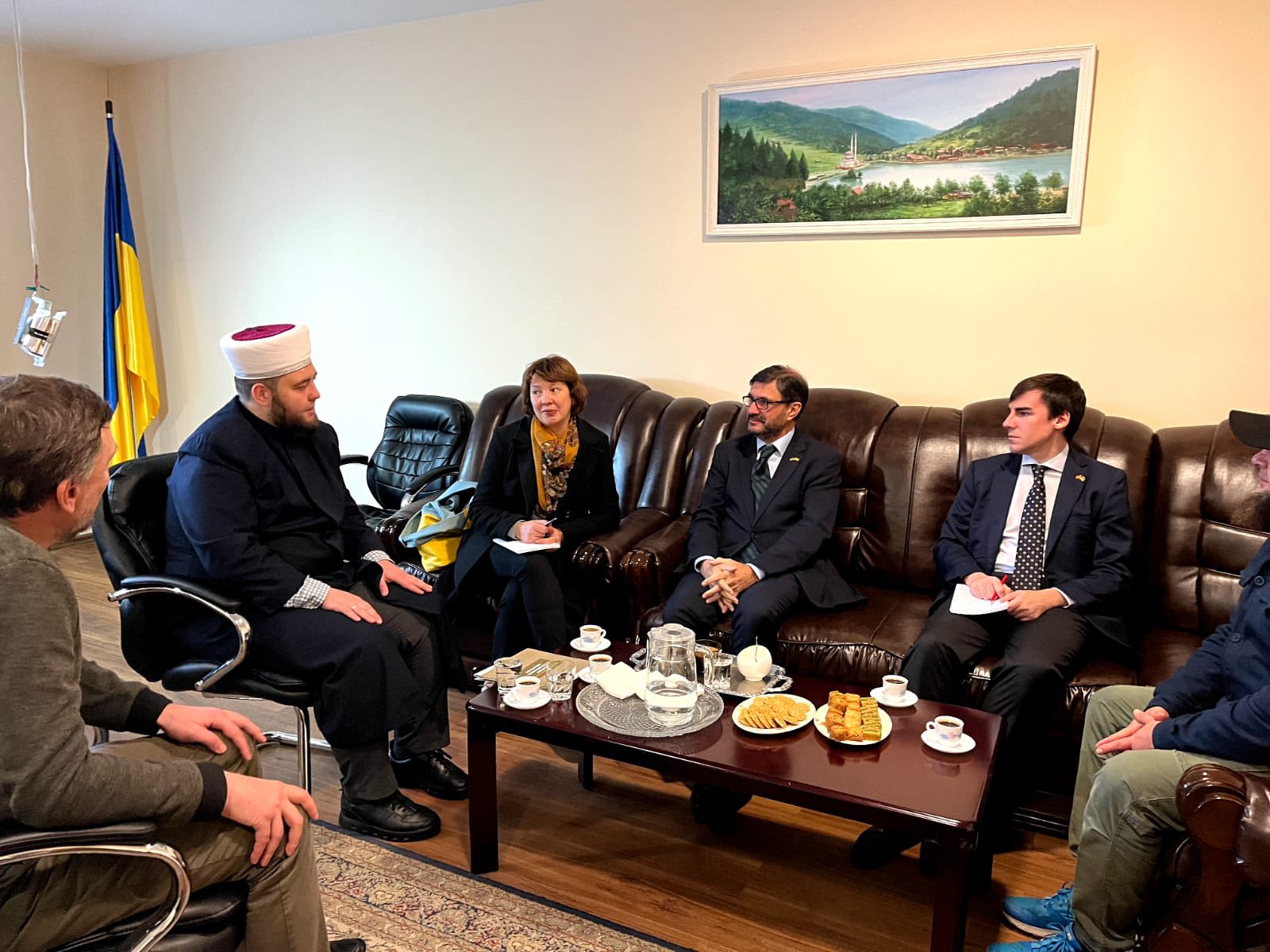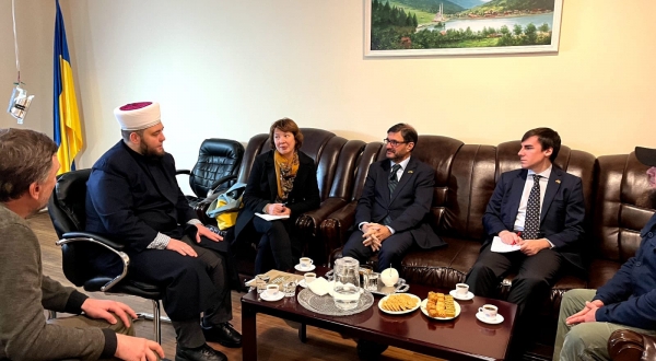 Муфтій ДУМУ «Умма» Мурат Сулейманов ознайомив дипломата з життям мусульманської спільноти України, розповів про роботу духовного управління та виклики, що з ними громада стикається від початку повномасштабного вторгнення Росії.